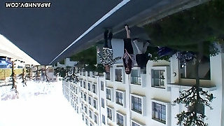 Ugly Chinese brunette Miki Sugimoto blows cock and fucks doggy style outside