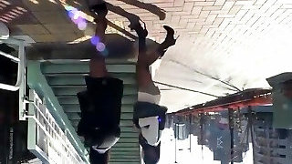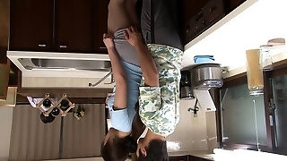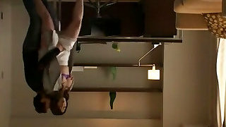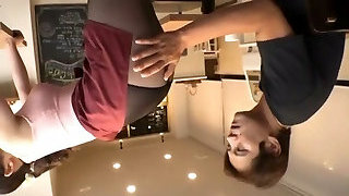 A petite Asian black-haired entertains a white stranger and drills him in crotchless pantyhose.