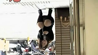 Japanese Female in Miniskirt Takes Off Her Clothes and Exercises