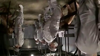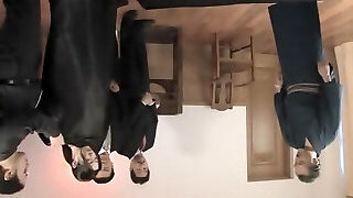 Student strapped to stocks fingered by teacher while mouth fucked by schoolguys shoots a load to mouth and face in the office feature
